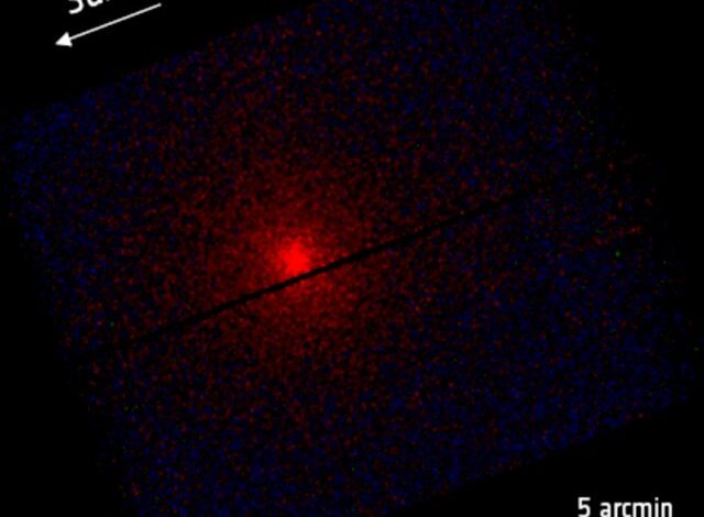 این عکس این دنباله دار را نشان می دهد که پرتوهای ایکس کم انرژی ساطع می کند. رنگ آبی نشان دهنده فضای بسیار کم اشعه ایکس است و رنگ قرمز تابش اشعه ایکس از دنباله دار را برجسته می کند. اخترشناسان انتظار داشتند که این تابش را ببینند زیرا مولکول های گازی که از دنباله دار پرتاب می شوند، در برخورد با باد خورشیدی، اشعه ایکس تولید می کنند.