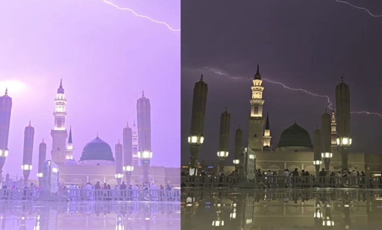 مگ دوست – باران در مدینه درحالی خیابانها را قفل و تردد را سخت کرد که همزمان صحنهای حرم نبوی را از جمعیت تهی و شهر همیشه شلوغ را آرام و خلوت کرد.