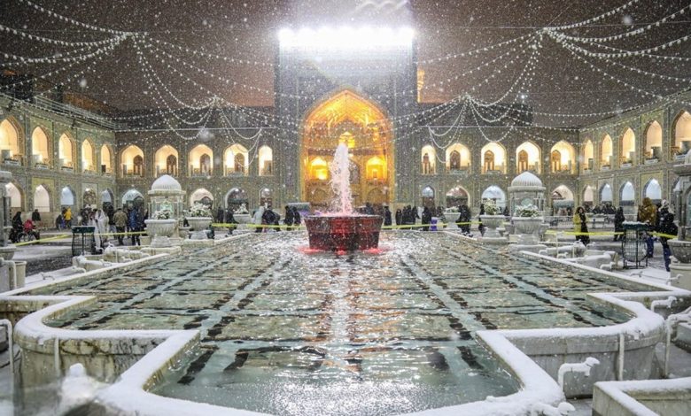 تصاویری زیبا از برف‌روبی پشت بام حرم مطهر رضوی + فیلم
